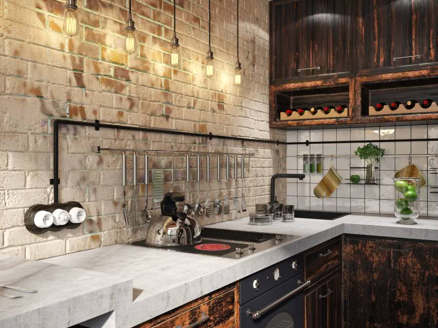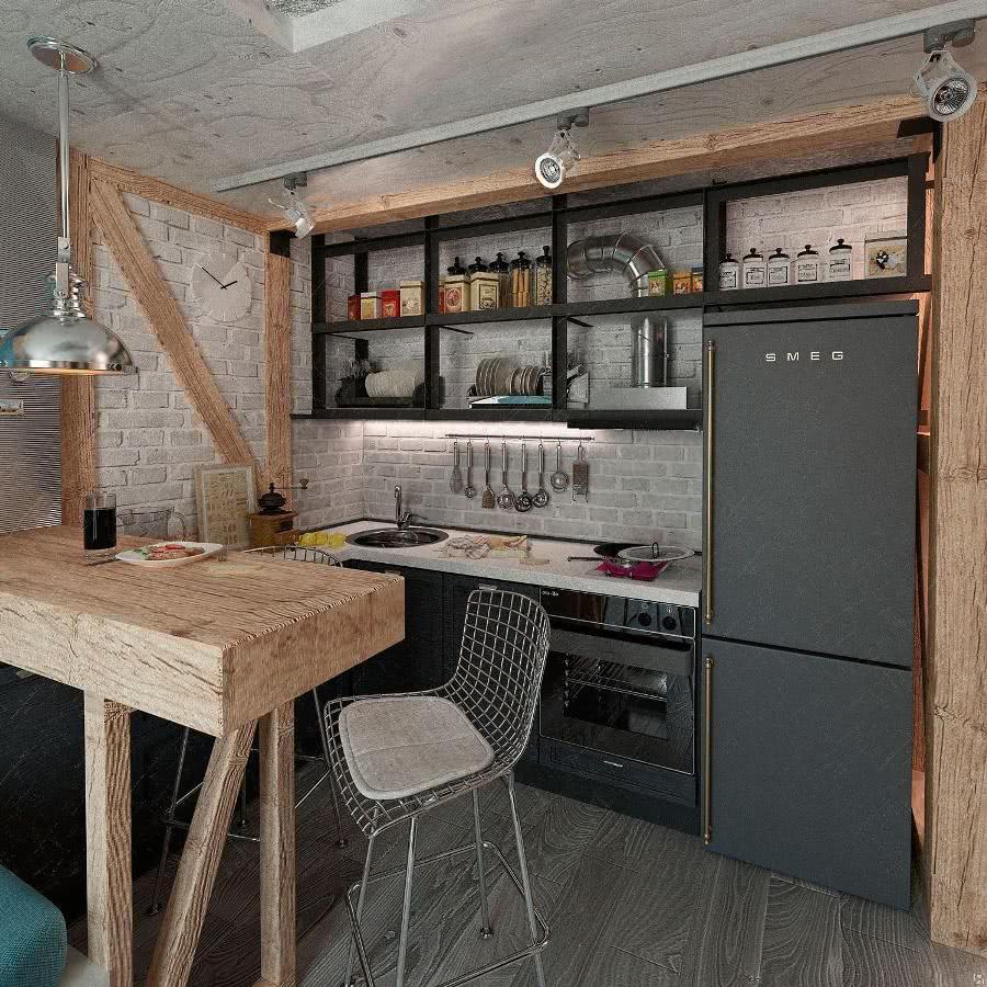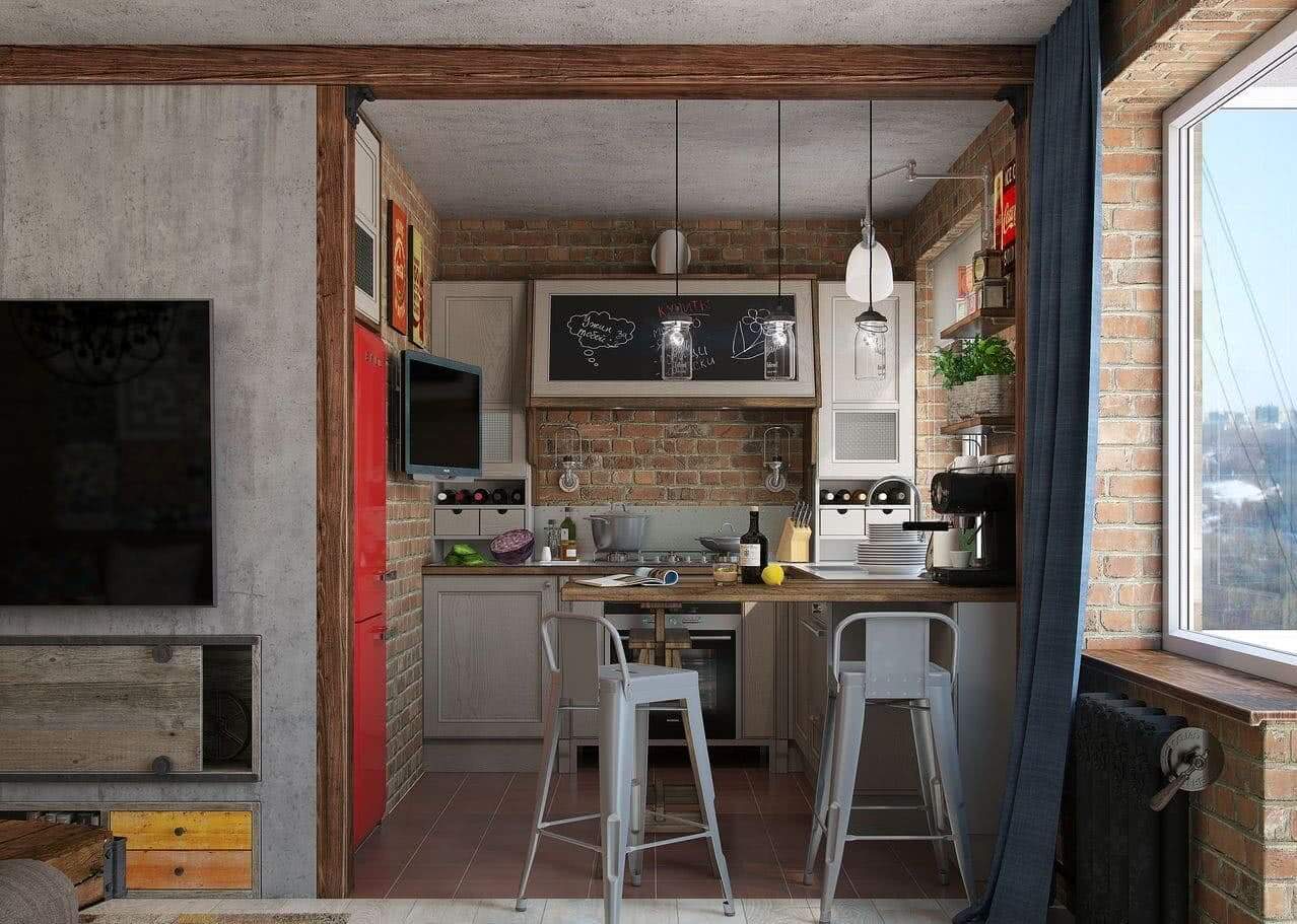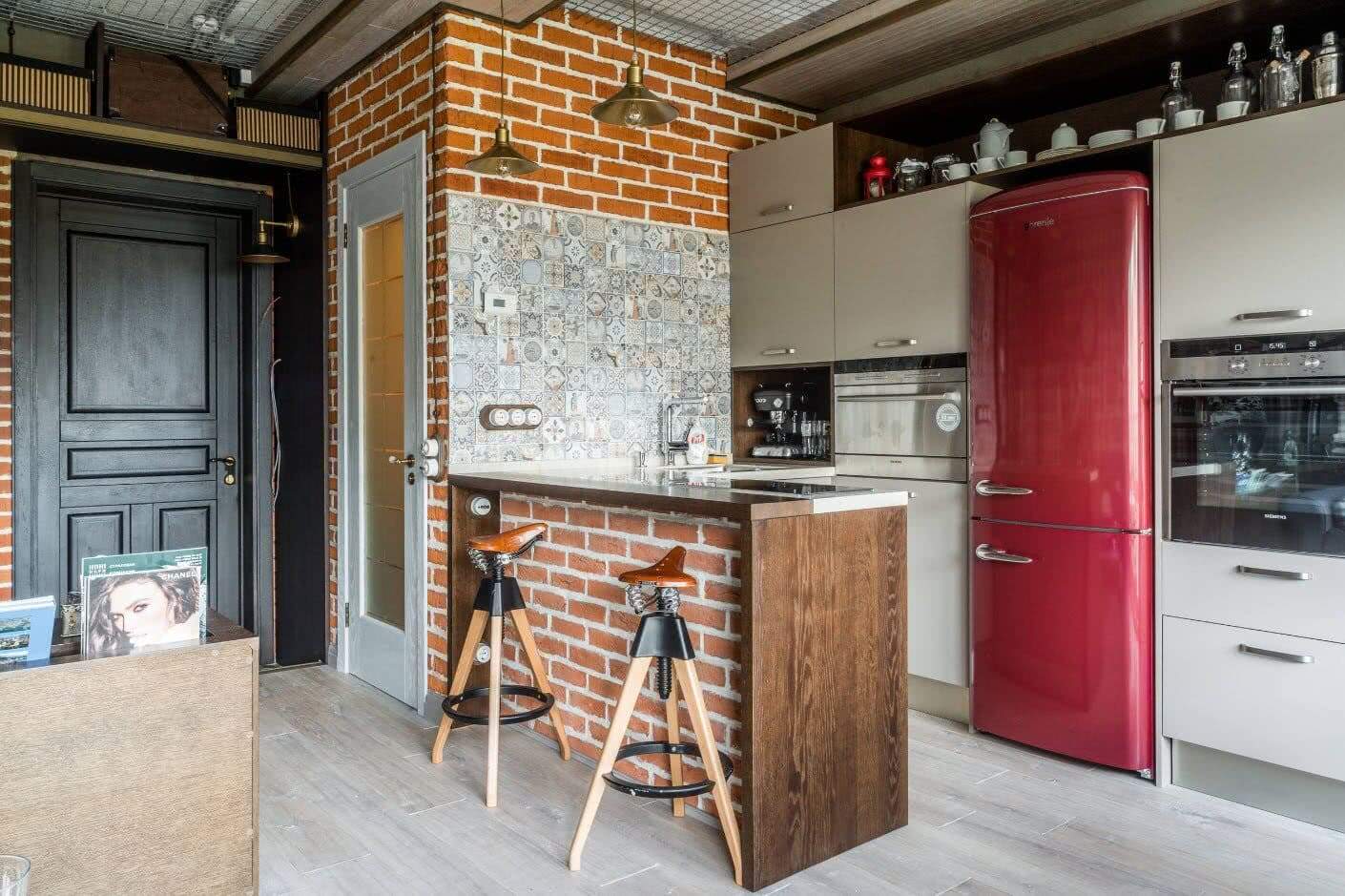 Если интерьер всей квартиры оформлен в стиле лофт, то для кухни не остается просто другого варианта — единство стилистики здесь играет ключевую роль. Идеально, когда эта зона совмещена с гостиной. Если нет, то рекомендуется минимизировать любые перегородки, возможно, демонтировав дверь или заменив ее на раздвижную.