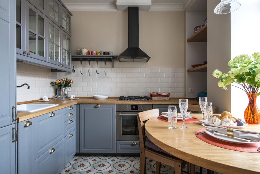 Выбор стиля – одна из главных задач при оформлении кухни, тем более такой маленькой. Классический стиль всегда в моде, при этом для маленького помещения он не совсем уместен.
