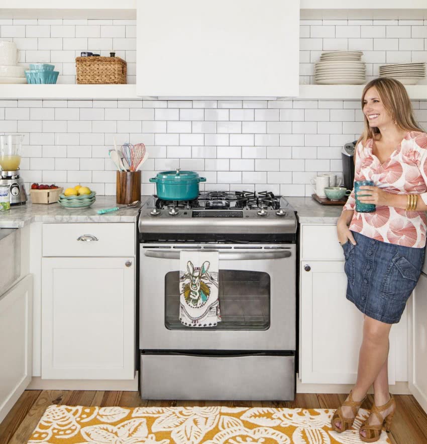 Окрашенные стены в компании с кафелем на фартуке создают великолепный союз для кухни