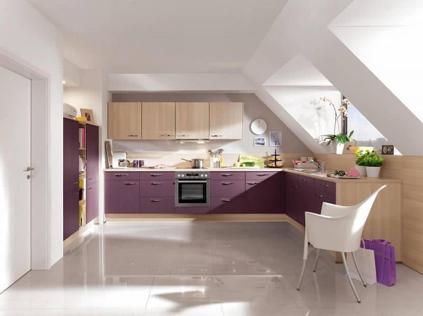 СоветЕсли вы размещаете кухню в мансарде, для использования пространства полки навесных шкафов делайте открытыми. Удачным выбором с этой точки зрения будет стиль лофт или прованс.