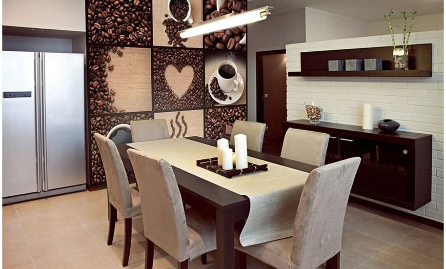 Для украшения стен можно использовать небольшие картины, панно, часы. Прекрасным декоративным элементом кухни станет посуда, расставленная на открытых полках или в серванте за стеклом.