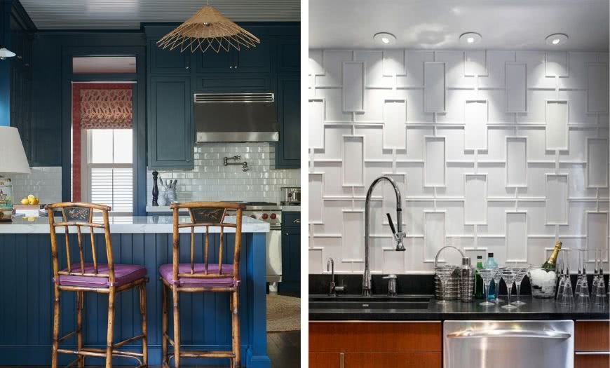 Еще лет 6 назад в моде было стеклянное полотно по всей длине фартука — скинали. Однако ухаживать за ним — отдельная песня, да и стоит подобное удовольствие недешево. Гораздо практичнее и не менее интересно уложить на эту зону керамическую плитку. Вариантов множество: