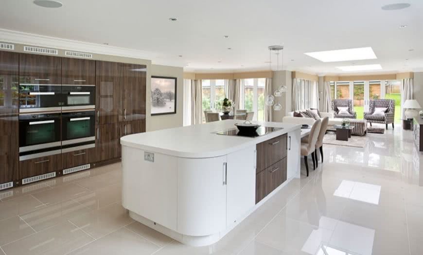 Кухня нового образца делает это место комфортным место для уединения, отдыха или работы. Здесь точно будет много света, удобные стулья, широкий просторный стол или барная стойка для кофейного тайм-аута. Все, что может перегружать это место, будет моментально искореняться или поддаваться модернизации.