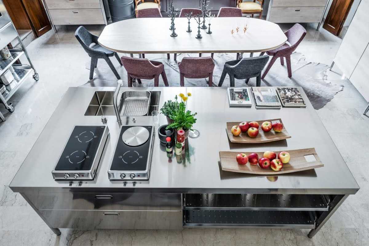 Компания представляет линейную кухню из нержавеющей стали, многочисленные фото которой представлены в интернете. Модульные элементы современной компактной кухонной техники можно разместить в любых комбинациях на рабочем пространстве кухни.
