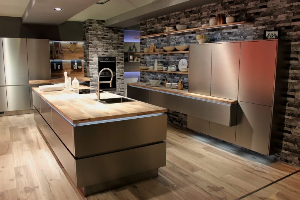 Покупатель решает, какая часть его модной кухни будет иметь теплый, насыщенный тактильный оттенок металла: только деликатные акценты или какой-либо компонент мебели или оборудования, который станет изысканным декоративным центром.