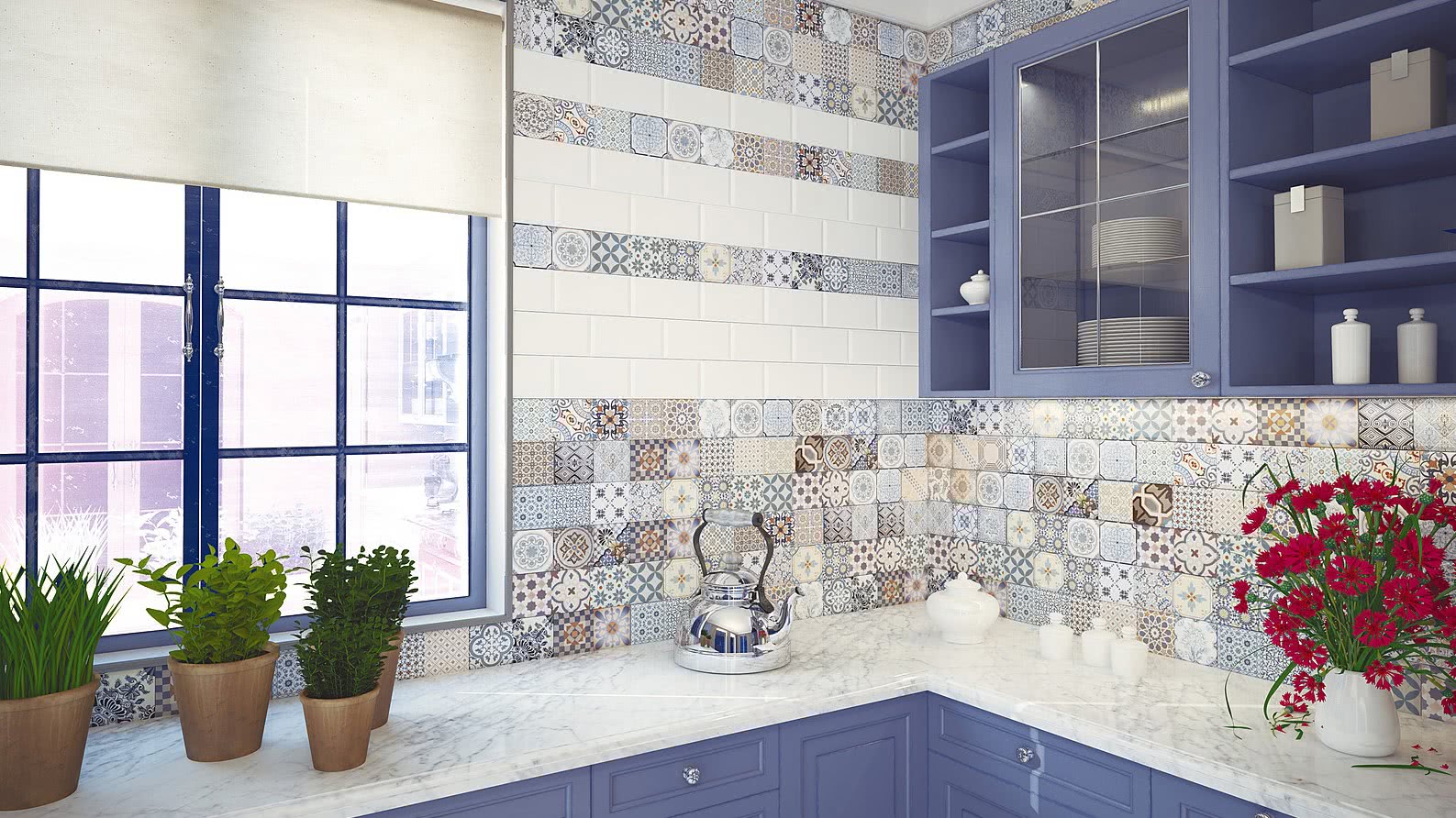 - сегментированную плитку в стиле пэчворк — очень востребованный именно сейчас;