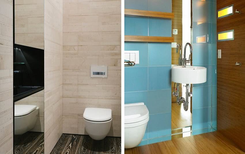 Зеркальные вставки расширяют пространство туалета
