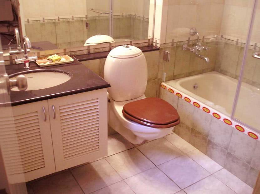 Малогабаритные помещения, где совмещают и ванную, и туалет оформляют в разных стилях. Для каждого предусмотрен свой дизайн.
