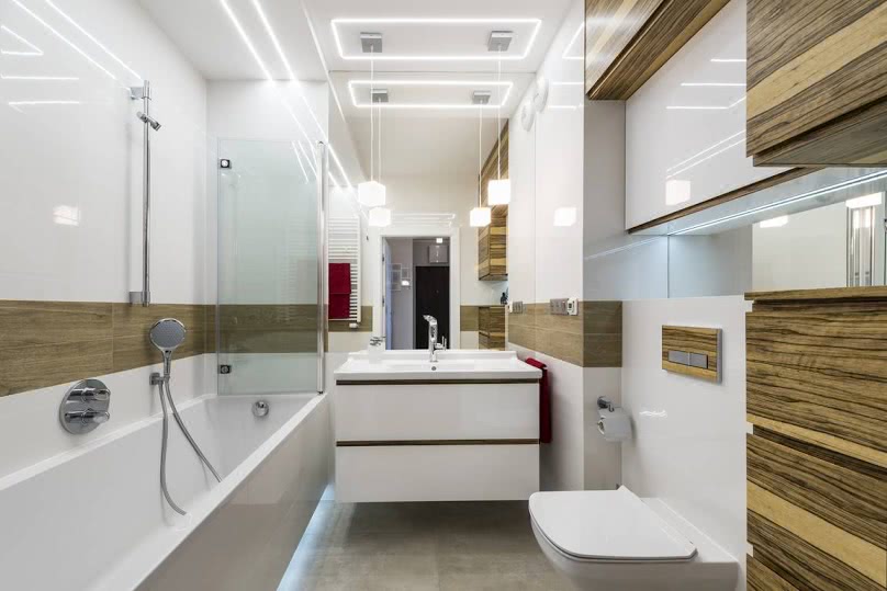 Виды отделки стен, пола и потолка санузла в загородном доме