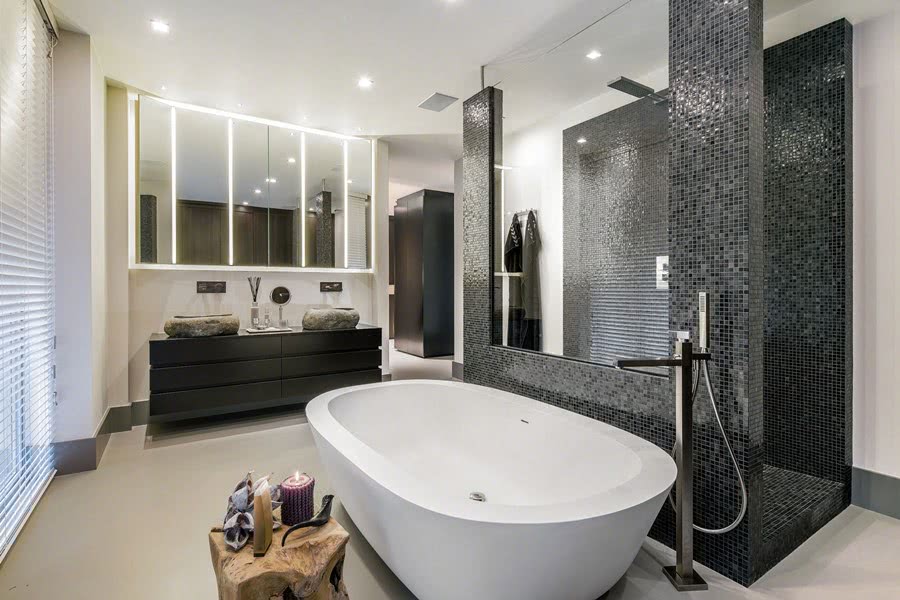 Если и пол, и стены ванной комнаты покрыты плиткой, вы также можете установить только дверь и слив. Это одна из последних тенденций 2020 — 2021 года, на которую обращает внимание все больше дизайнеров