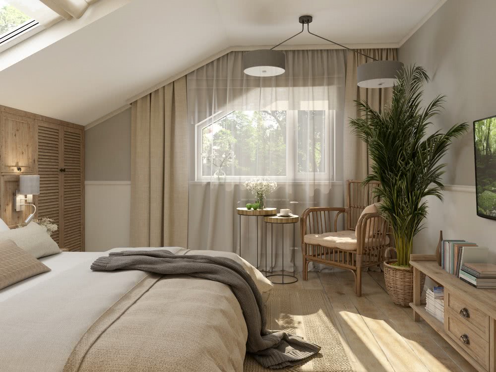 Красивая спальня: мансарда в стиле Wellness