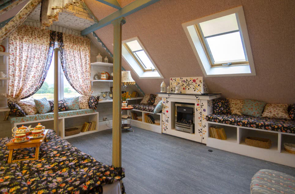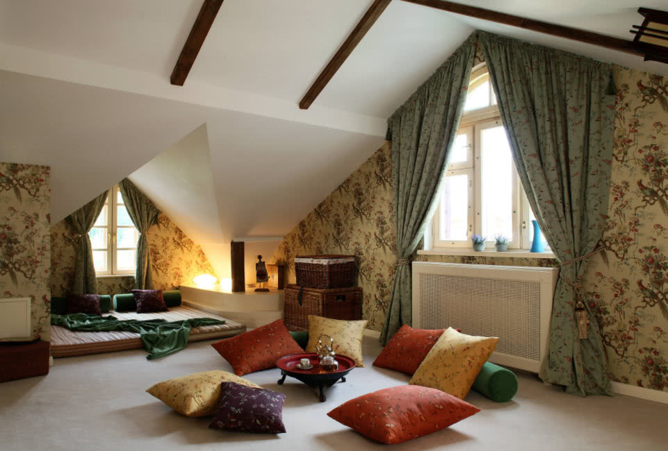 - Широкий выбор возможных назначений и версий дизайна интерьера мансарды.