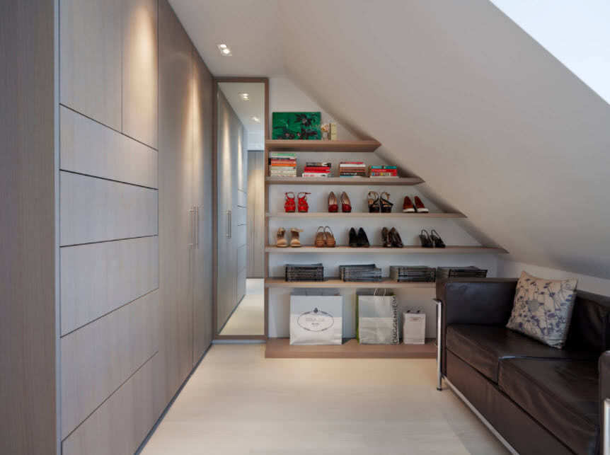 Гардеробная в мансарде избавит от шкафов в каждой комнате