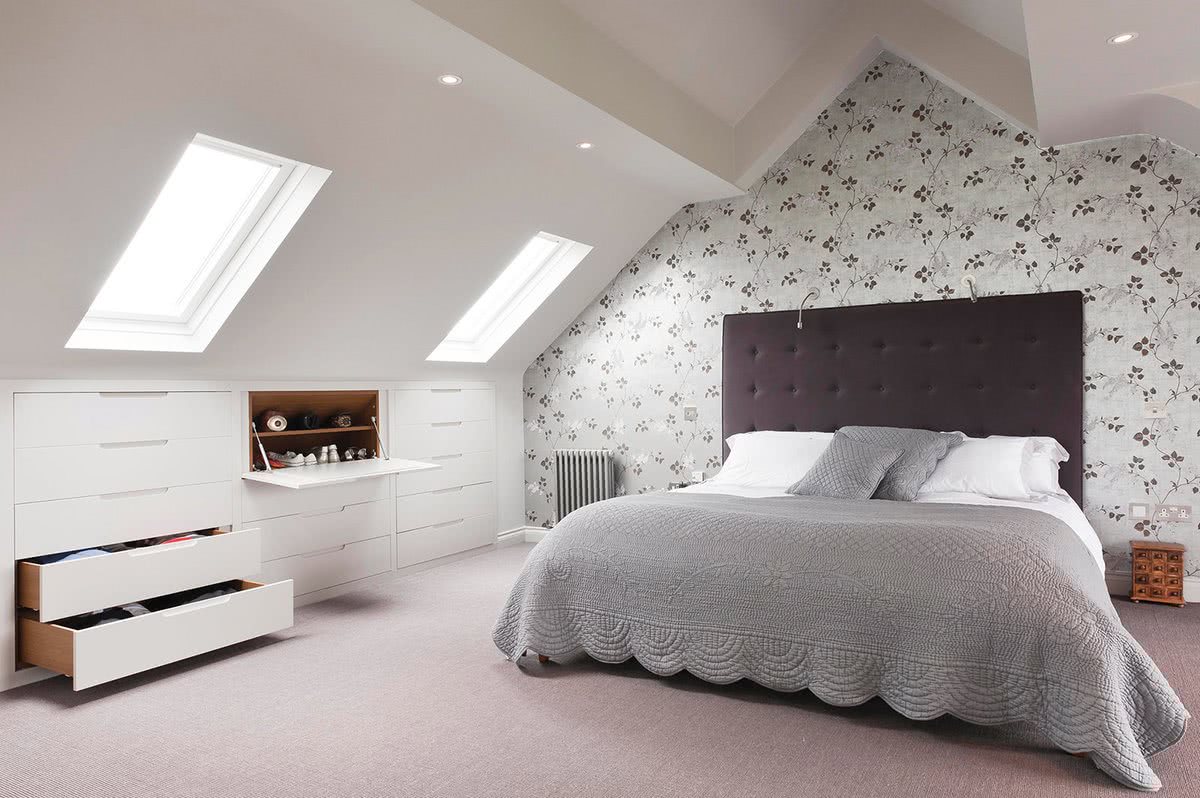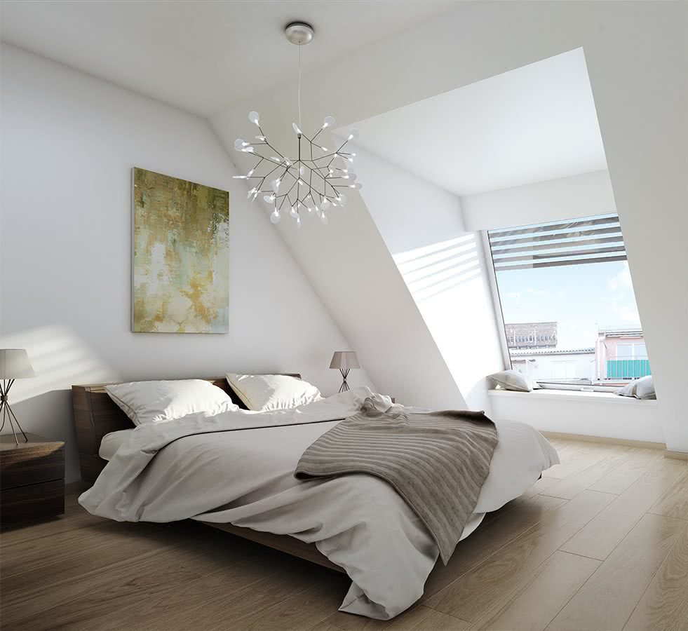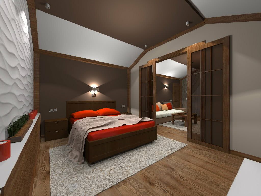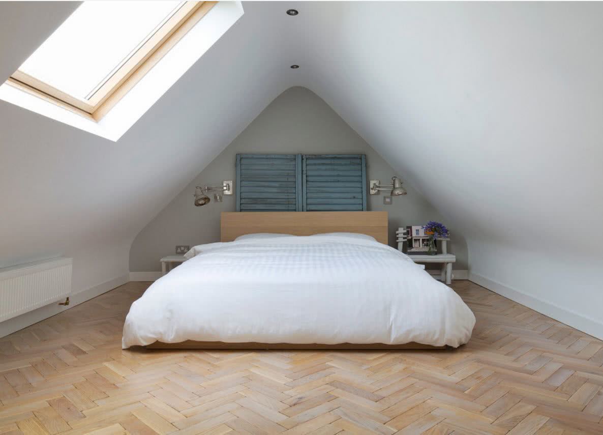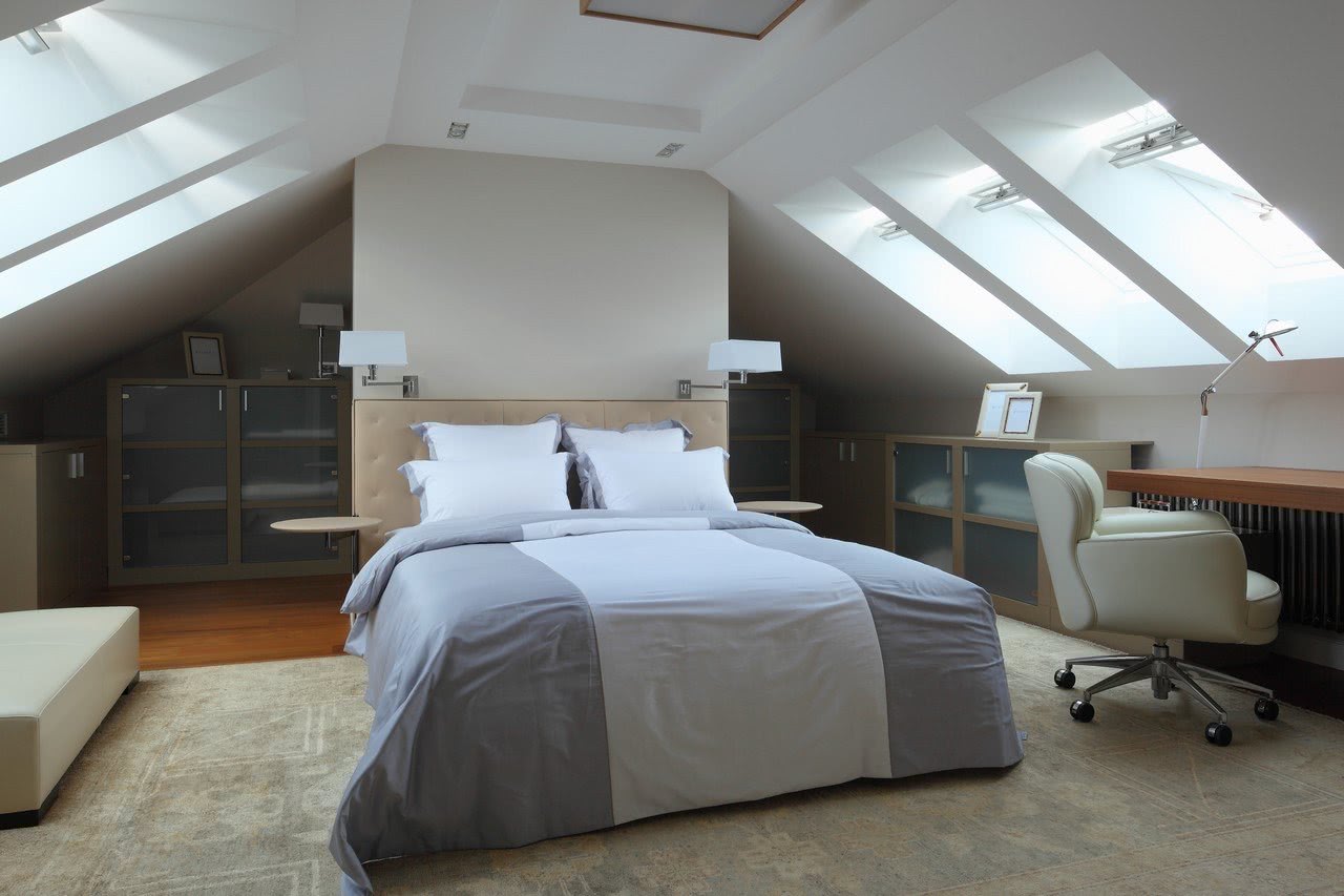 Планировку спальни следует осуществлять, учитывая тип кровли. Форма крыши является решающей при расположении мебели. Очень редко мансарда имеет прямой и ровный потолок. В некоторых домах потолка на крыше и вовсе нет.