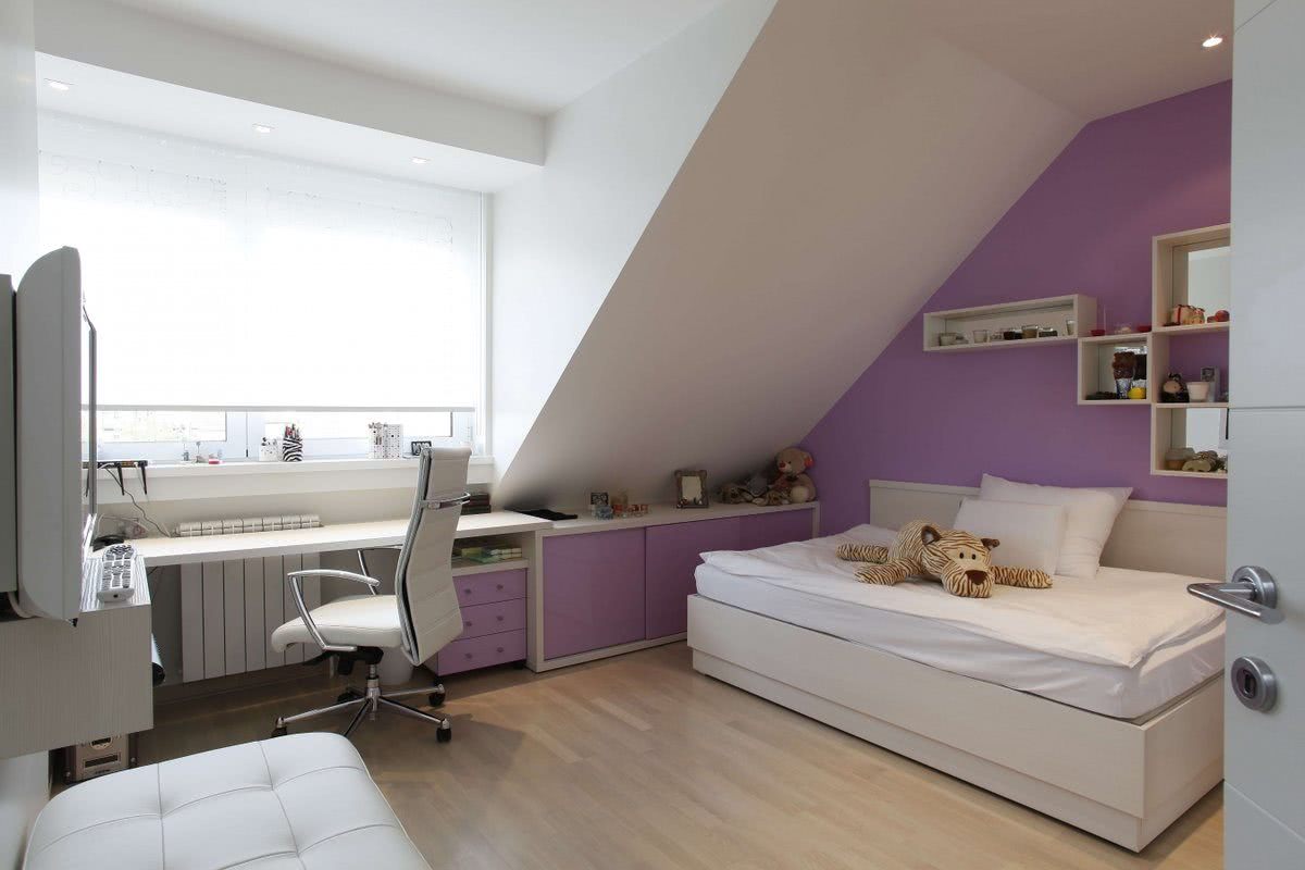 Наклонная спальня, подходящая для потребностей нескольких подростков, может быть более требовательной. Детская комната на мансарде должна быть оснащена необходимой мебелью и хорошим боковым освещением. Современный дизайн развивает воображение юных пользователей. Кровать с любимым мотивом или игровой уголок может сделать современную спальню удобным местом для отдыха. Достаточно большая комната также может быть использована для многофункционального использования.