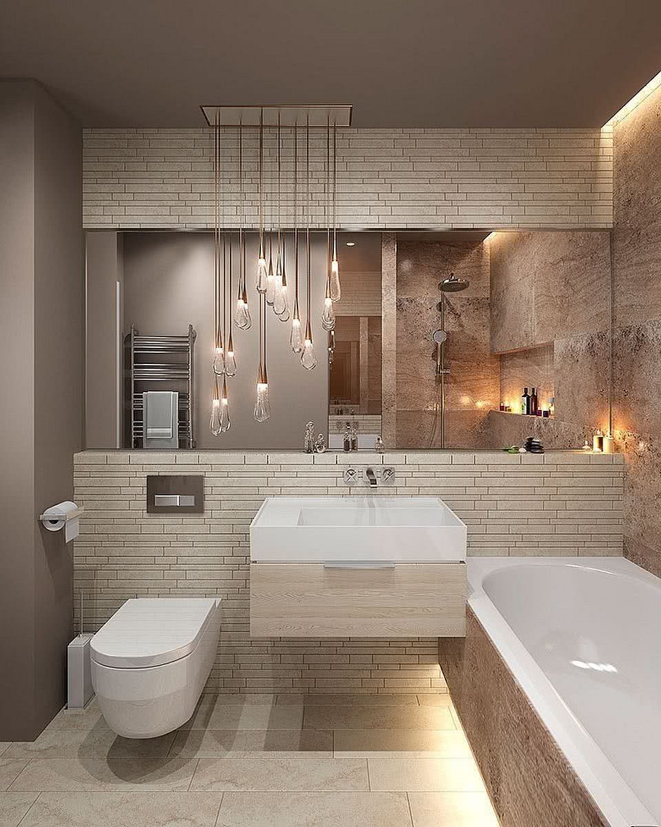 Если вы ищете компактные идеи для небольших ванных комнат, стоит задуматься о создании правильного освещения. Встроенные светильники позволяют даже самым маленьким и узким комнатам казаться намного больше. Естественный свет, проникающий через большое окно, несомненно, является оптимальным решением. Ванные комнаты без окон также могут сильно преображаться при соответствующем освещении. Например, замените отдельные большие светильники несколькими точками на потолке, пустите освещение на уровне пола, которое будет выглядеть великолепно. При входе в комнату происходит освещение всех нужных мест, придавая ощущение большего пространства.