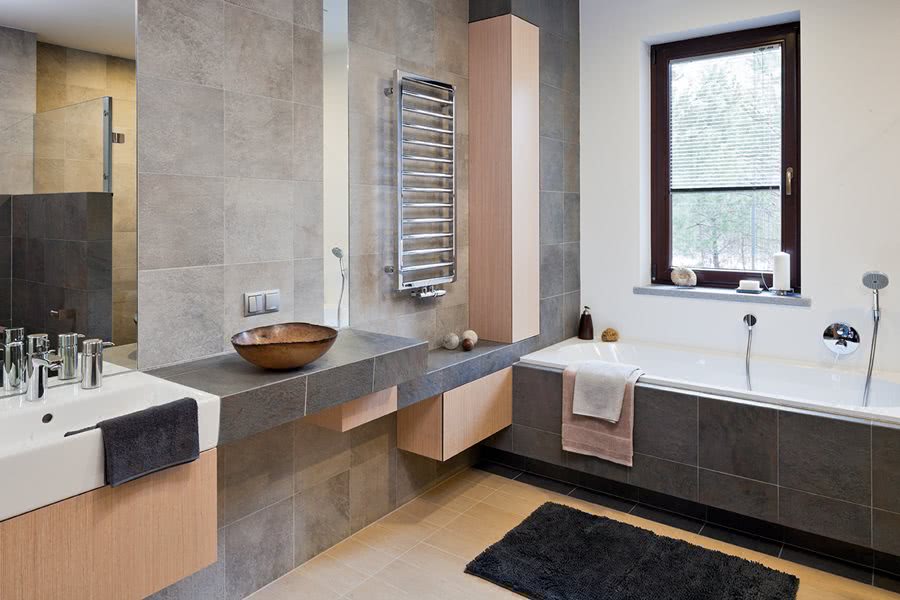 - Повышение уровня эстетики и эргономики. Чем больше площадь, тем более выразительным может быть дизайн интерьера. Кроме того, увеличенное пространство позволяет скрыть все инженерные системы, организовать удобное хранение банных принадлежностей и других вещей, оптимально расположить все элементы обстановки.