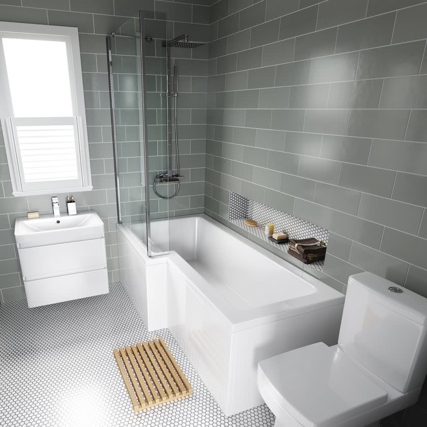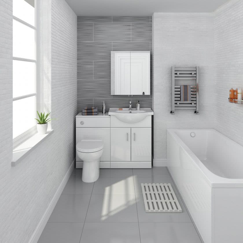 Тогда вдоль боковой стенки можно разместить раковину и стиральную машину, а если ванная совмещена с туалетом, то и унитаз.