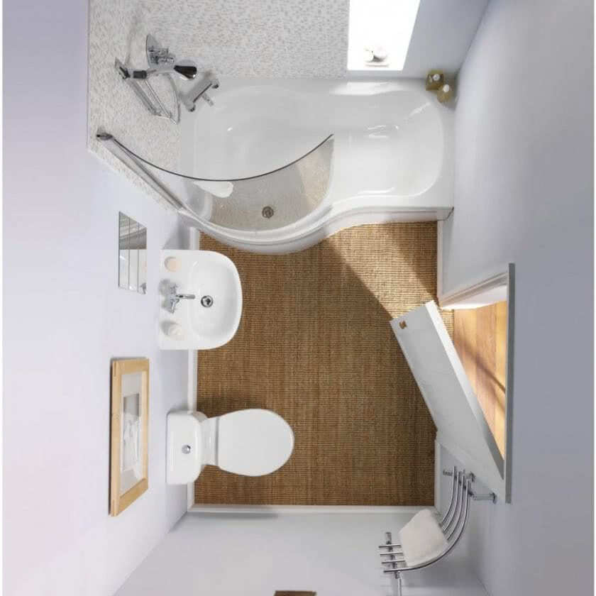 В зависимости от того, где расположена дверь, унитаз и душевую кабину можно расположить в дальних углах, а небольшую стиральную машину – при входе. Размеры душевой кабины тоже должны быть самые маленькие. В противном случае, в ванной останется мало свободного места.