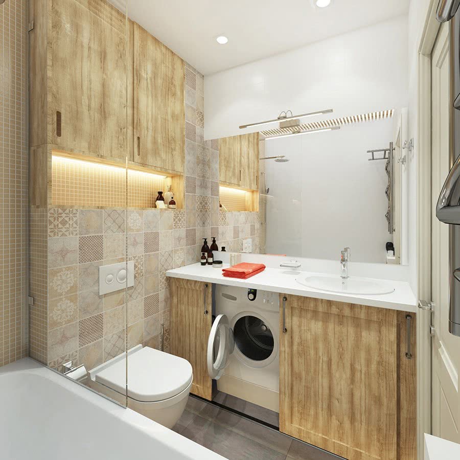 Дизайн ванной комнаты с туалетом и стиральной машиной 4 кв. м