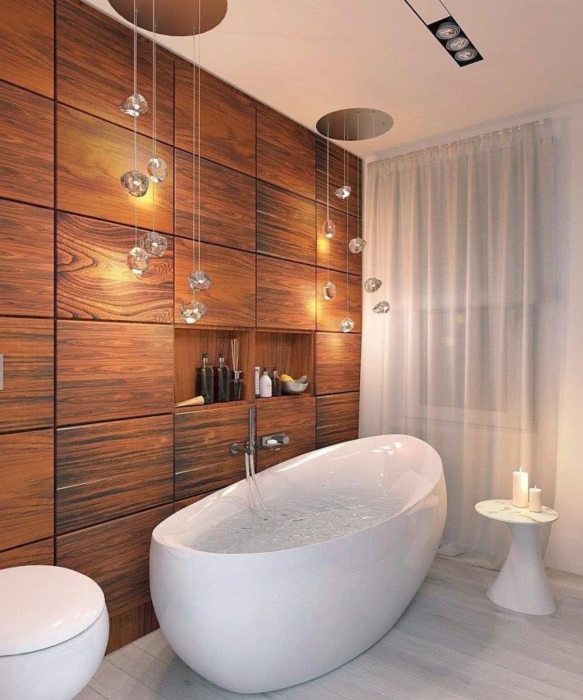 Так как мы имеем сильные ограничения в пространстве, то не стоит захламлять поверхности огромным количеством элементов декора. Достаточно будет 2-3 декоративных свечей или стильных фигурок, которые вам нравятся. Таким образом ванная будет иметь свой неповторимый дизайн, но в то же время не будет выглядеть перегруженной.