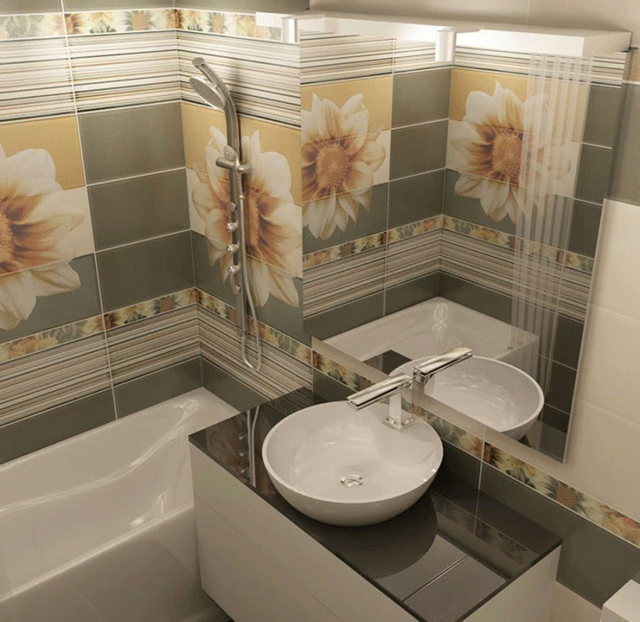 Если ванная 5-6 метров, то на стенах можно использовать 2 вида плитки. Но не делить стену горизонтально или вертикально, а использовать по принципу 1 плоскость — 1 плитка. В крайнем случае зонировать с привязкой к сантехнике и мебели или с какой-то идеей.