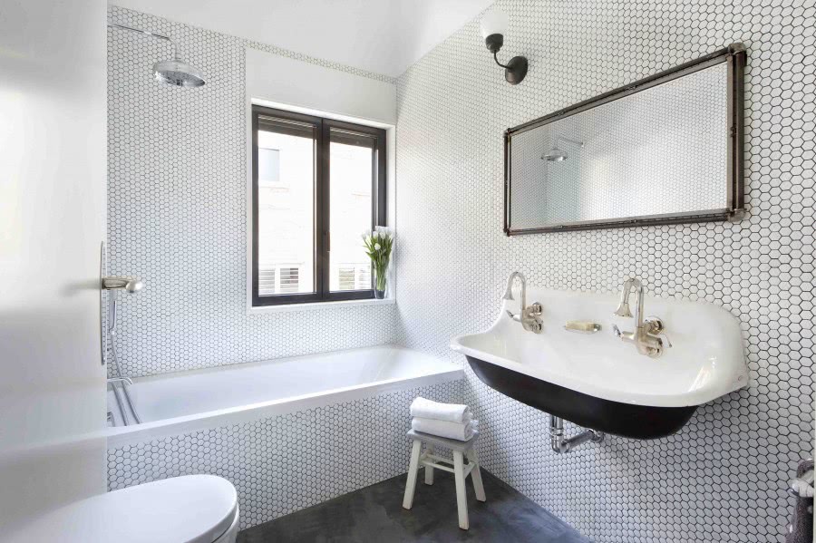 Для более целостного вида интерьера стоит позаботиться о том, чтобы все металлические детали — крючки, ручки, смесители, краны, сушка для полотенец — были выполнены примерно из того же материала (сталь, латунь, бронза, железо или позолота).