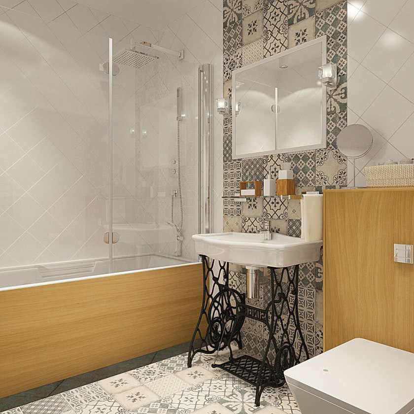 Отделка ванной комнаты плиткой — в этой фразе уже есть ответ. Отделка, а не декор. Плитка — отделочный материал. На маленькой площади любые попытки использовать плитку яркую, цветную, с узорами и рисунками, сюжетами и т.д. обречены на провал. Будет просто колхозная каша из цветов и текстур, которая будет контрастировать с белой сантехникой.
