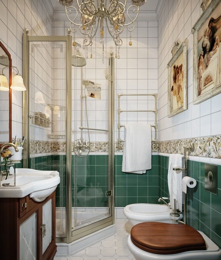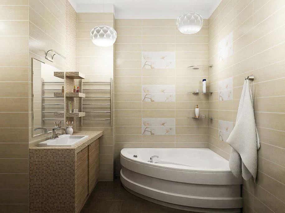 Уместным также будет использование нескольких зеркал. Допускается комбинирование 2-3 видов плитки для отделки поверхностей. Она может отличаться рисунком, цветом и даже формой.