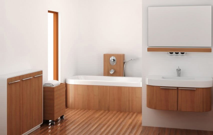 Предметы из натуральной древесины – это классика. Стоит такая мебель недёшево, но зато она наполнит вашу ванную теплом и уютом