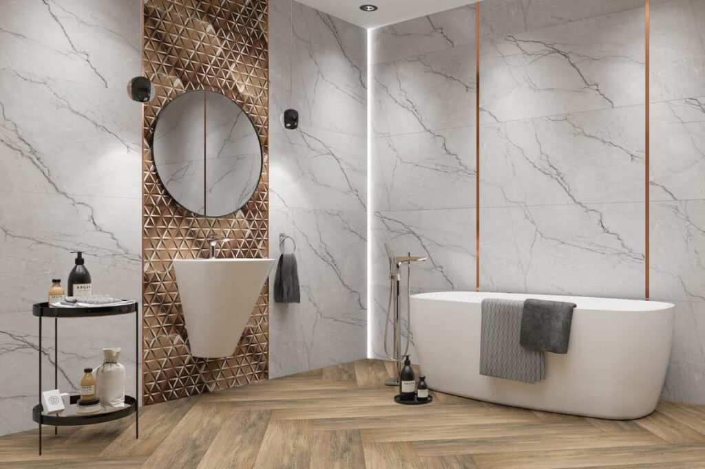 В 2020-2021 году в модной ванной комнате обязательно будет модная настенная и напольная плитка, а также раковины, ванны или даже мебель из натурального мрамора или его имитации. Плитка для ванной на 2021 год тоже может быть классической из керамогранита или керамики.