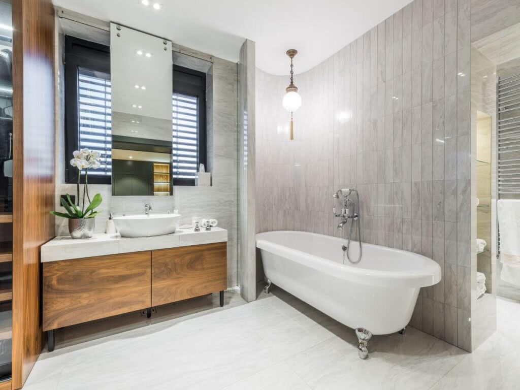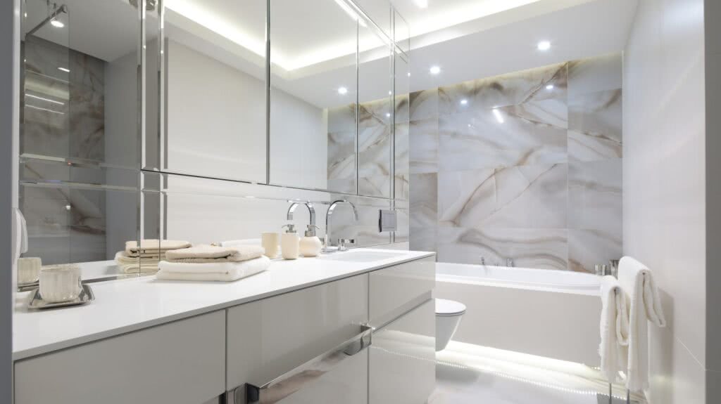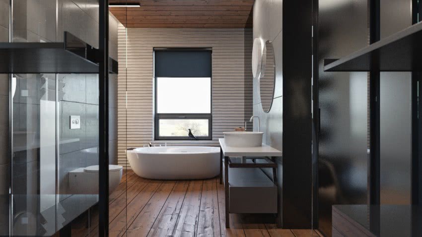 В моде открытые пространства, подчеркнутые специально подобранным освещением. Внутри большие окна, пропускающие естественный свет. На шаг впереди идут решения, в которых дизайнерская ванная комната является неотъемлемой частью гостиной или спальни, без четкого разделения на отдельную комнату.