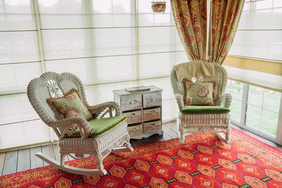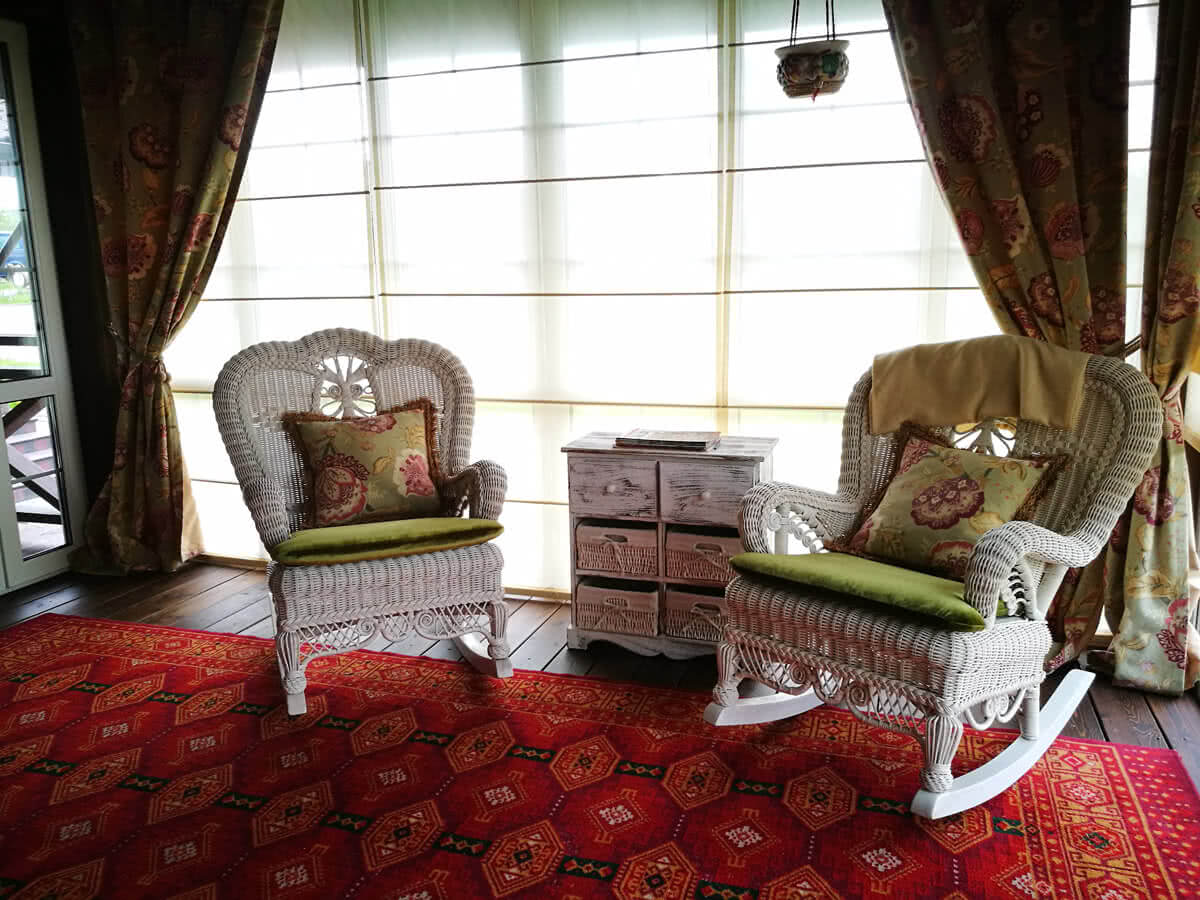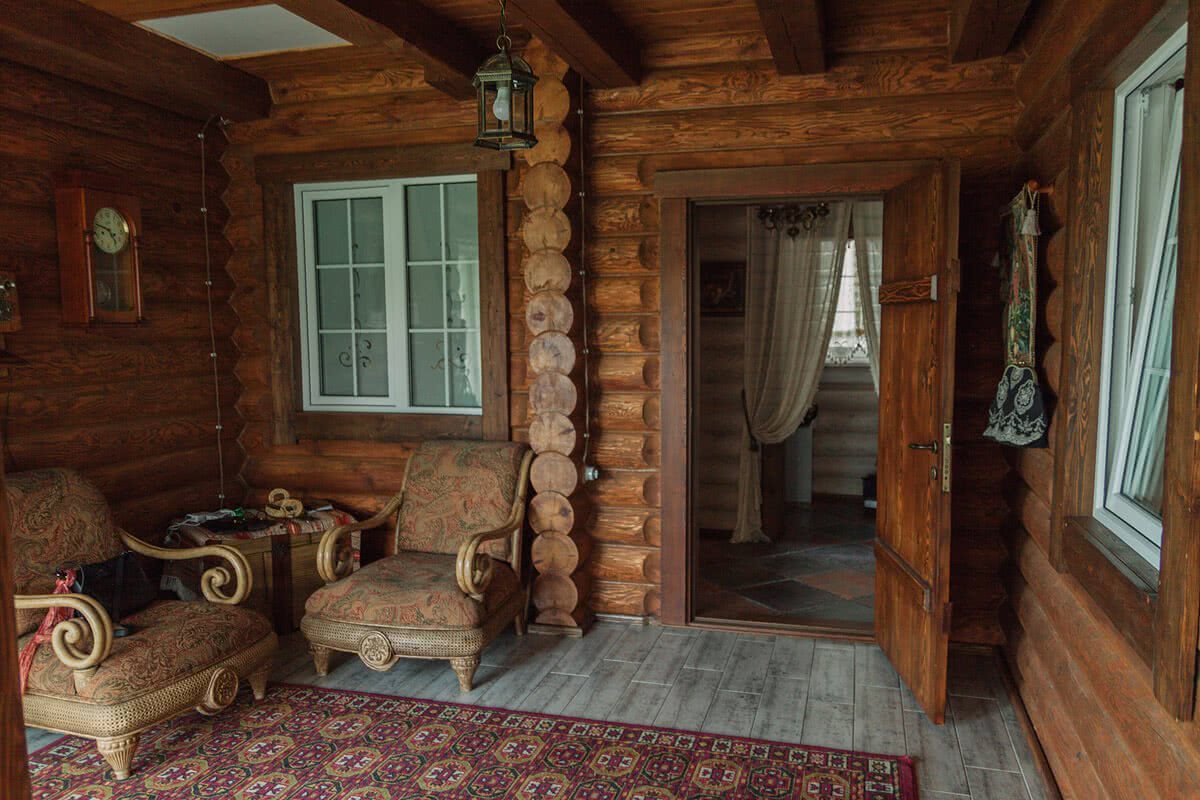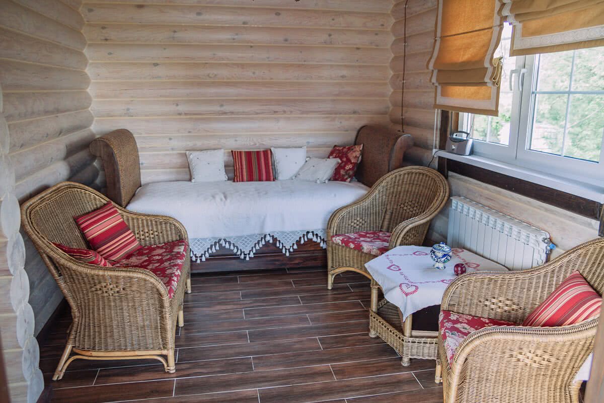 Из гостиной есть еще один выход на крытую веранду, здесь очень хорошо посидеть, подумать, почитать.