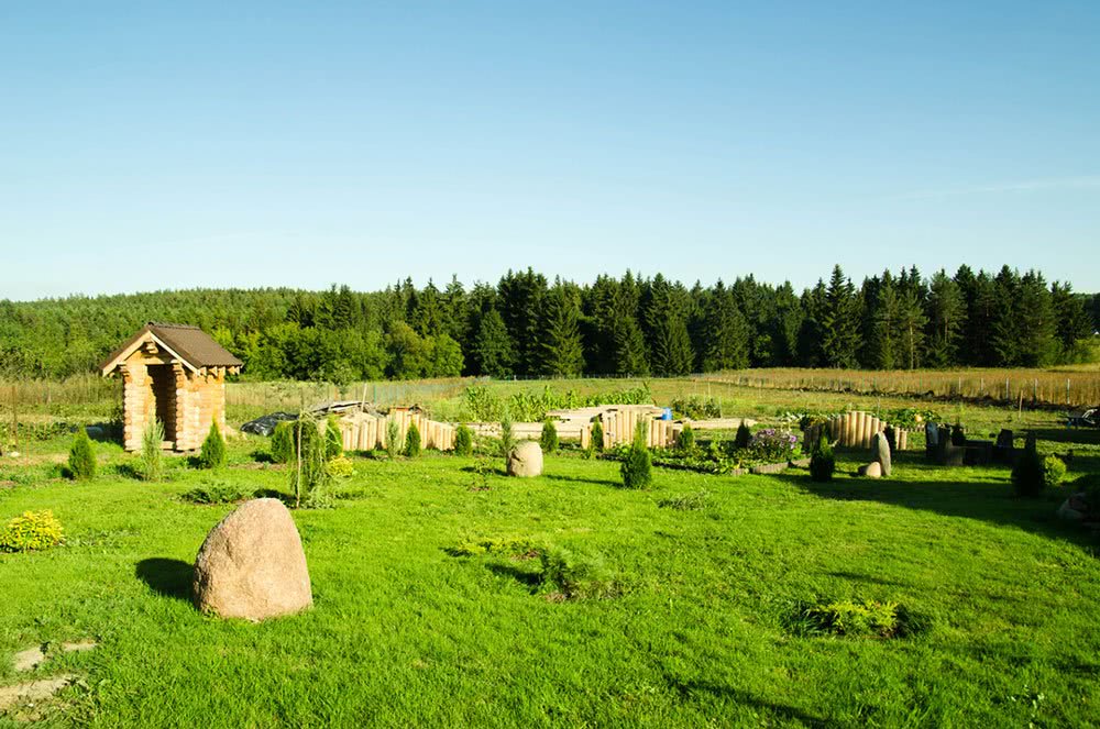 На участке стоит самобытный уличный туалет, который компания «Экохоум» построила мне бесплатно, в виде бонуса. Вроде мелочь — а какой-то самобытности ландшафту придает.