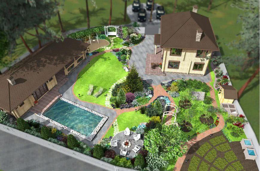 Строительные работы не могут начаться без вмешательства дизайнеров, ведь именно их кропотливый труд позволяет компактно расположить на маленькой земельной площади все желаемые объекты. Дизайн небольшого земельного надела будет выполнен по одному из популярных вариантов планировки: