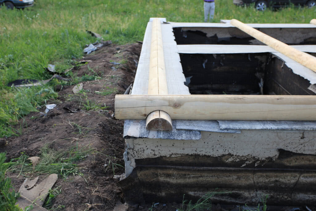 После окончания выведения сруба, ему дают время на усадку и только после этого утепляют и устанавливают гидроизоляцию на окладной (нижний) венец.