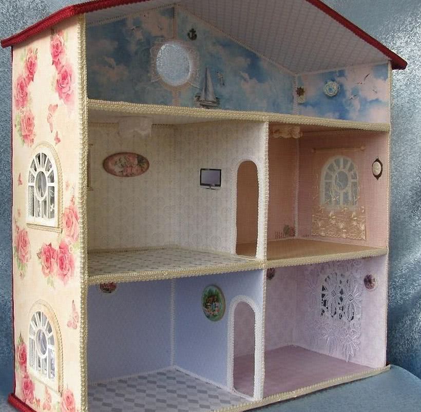 Магазинные кукольные домики не только дороги, но и однотипны. Внешний вид игрушки, изготовленной своими руками, зависит исключительно от фантазии мастера и ребенка.