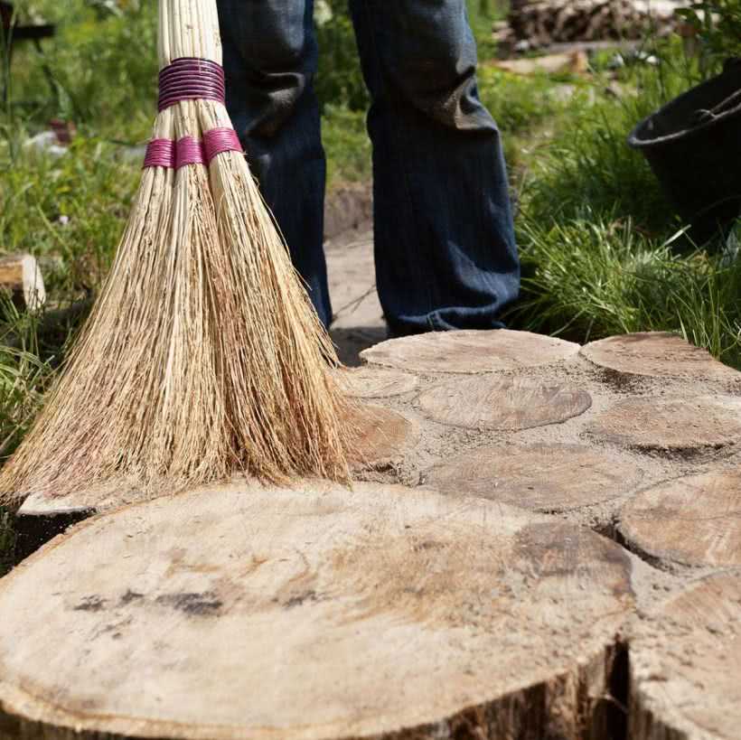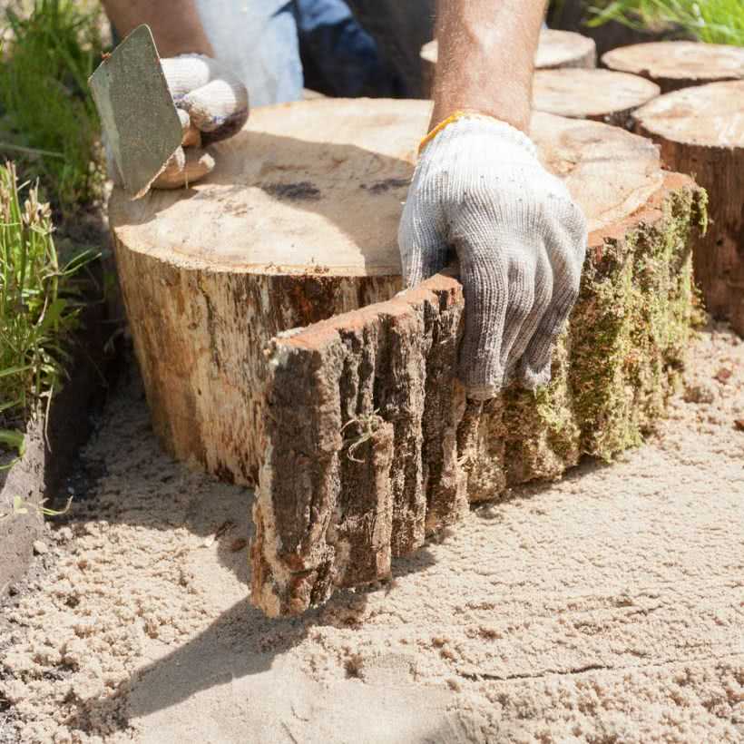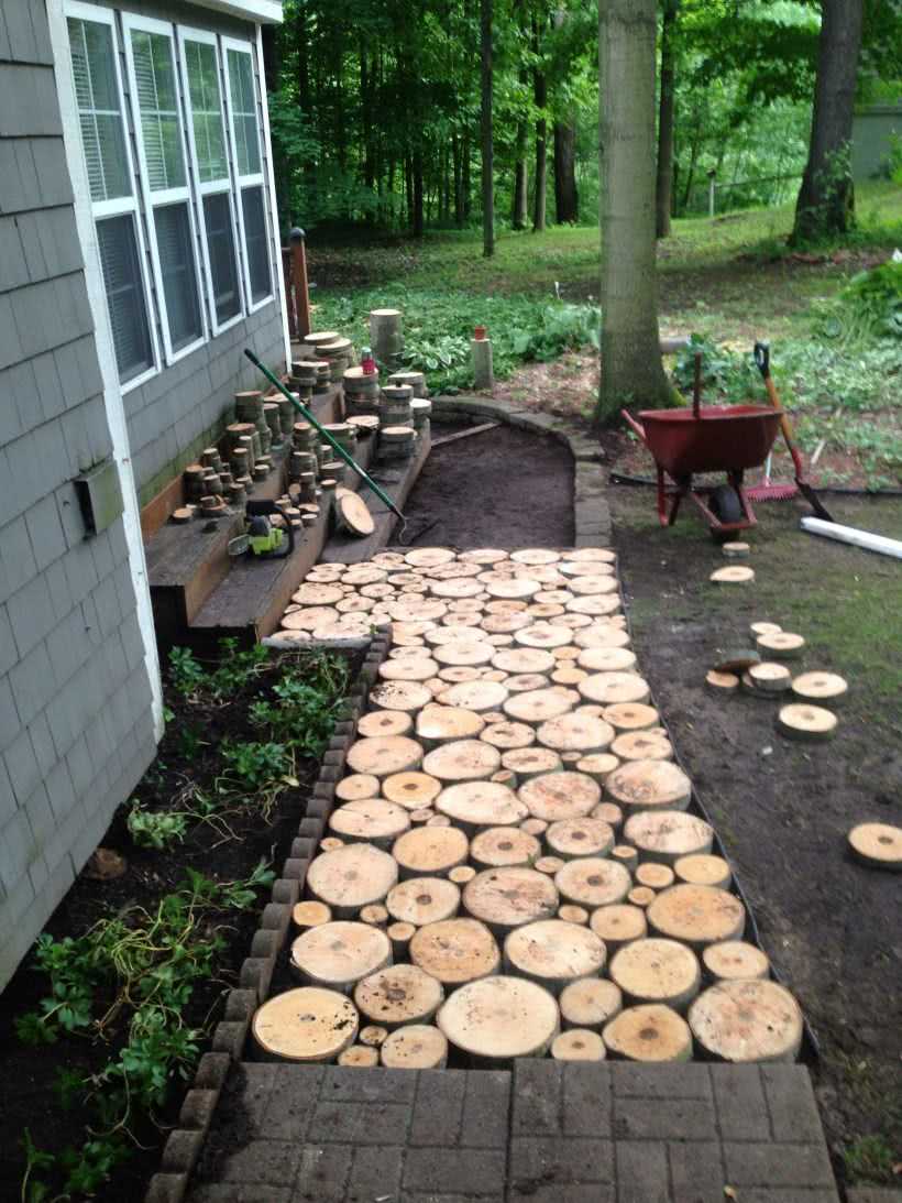 Если у вас есть уже готовые спилы — прекрасно. Если нет, самое время «нарезать» их самостоятельно. Сделать это можно при помощи бензопилы, главное- это соблюдать некоторые несложные правила. Например, спилы нужно делать обязательно одной толщины (10−15 см), а вот ширина их, как правило, колеблется от 7 до 55 см, в зависимости от ширины предполагаемой тропинки и наличия, собственно, древесного материала.