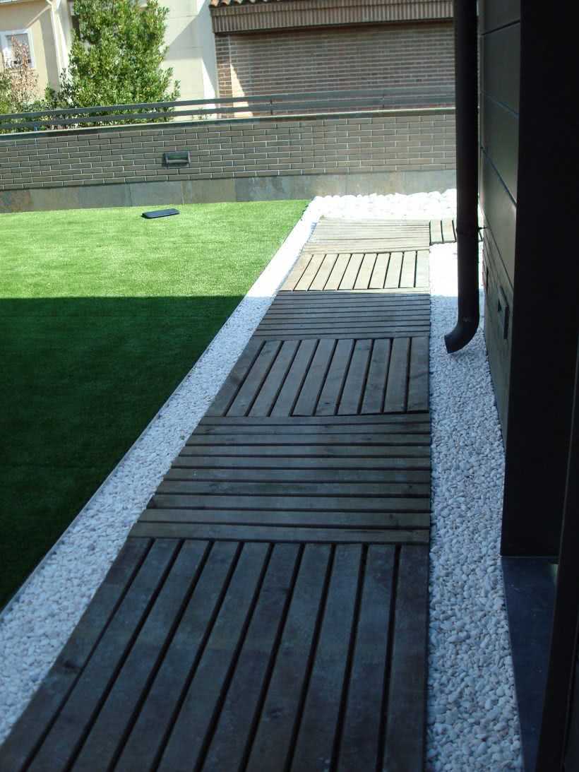 Деревянная дорожка из досок на небольшом подъемеИсточник houzz.es