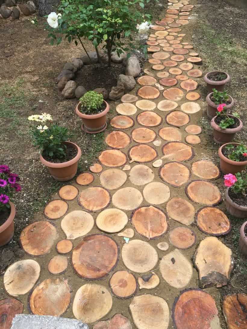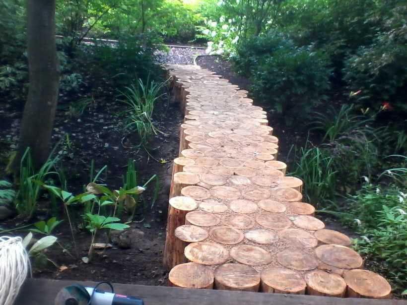 Чтобы создать на своем участке дорожки из дерева, нужно подготовить: