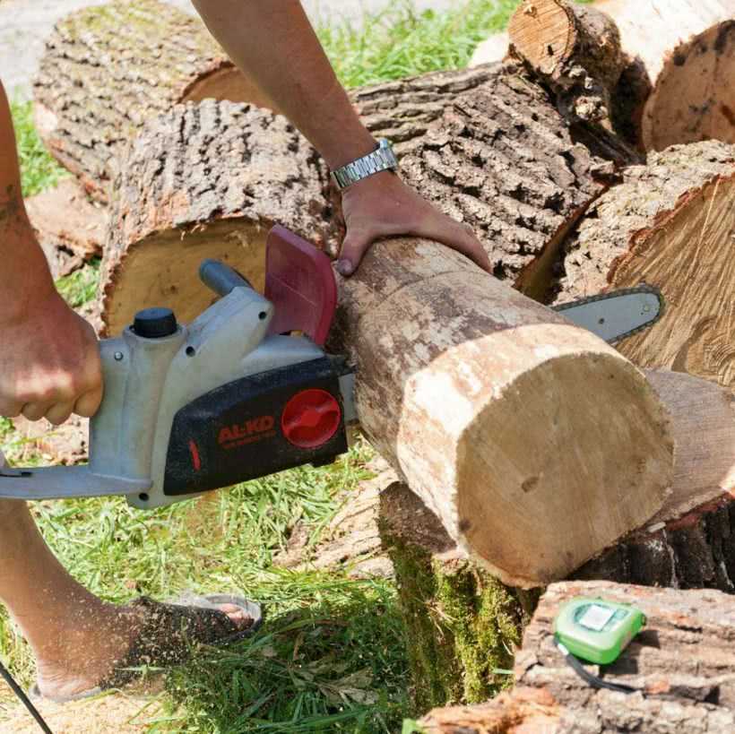 - распиловка бревна по выполненной разметке при помощи бензо- или электропилы.
