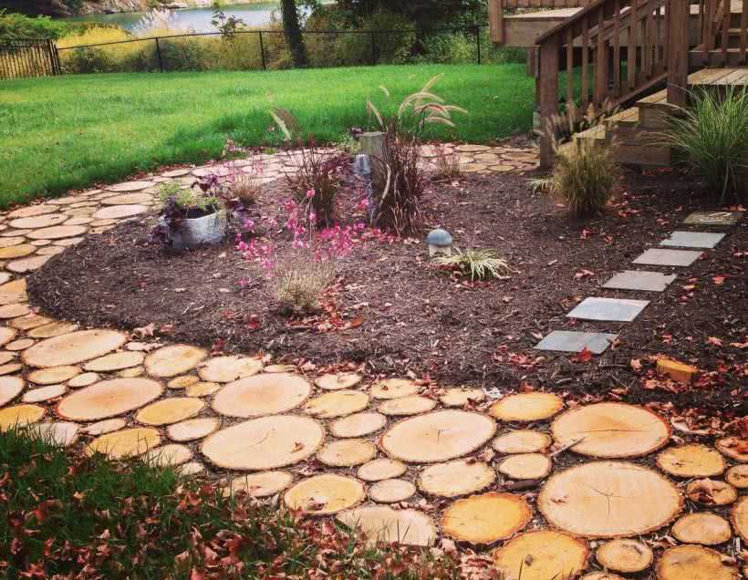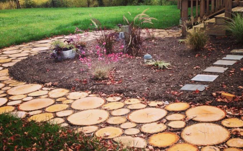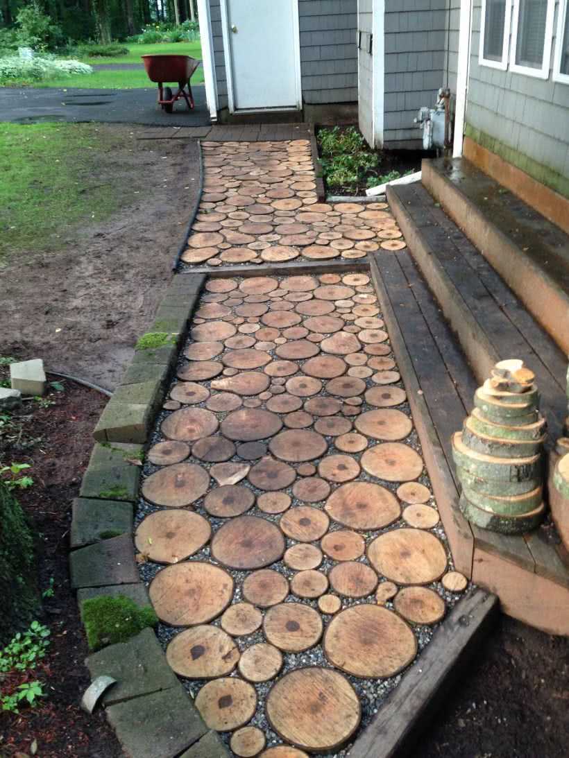 - универсальность (возможность создания дорожки из деревянных паллет, спилов бревен или досок специального террасного паркета).