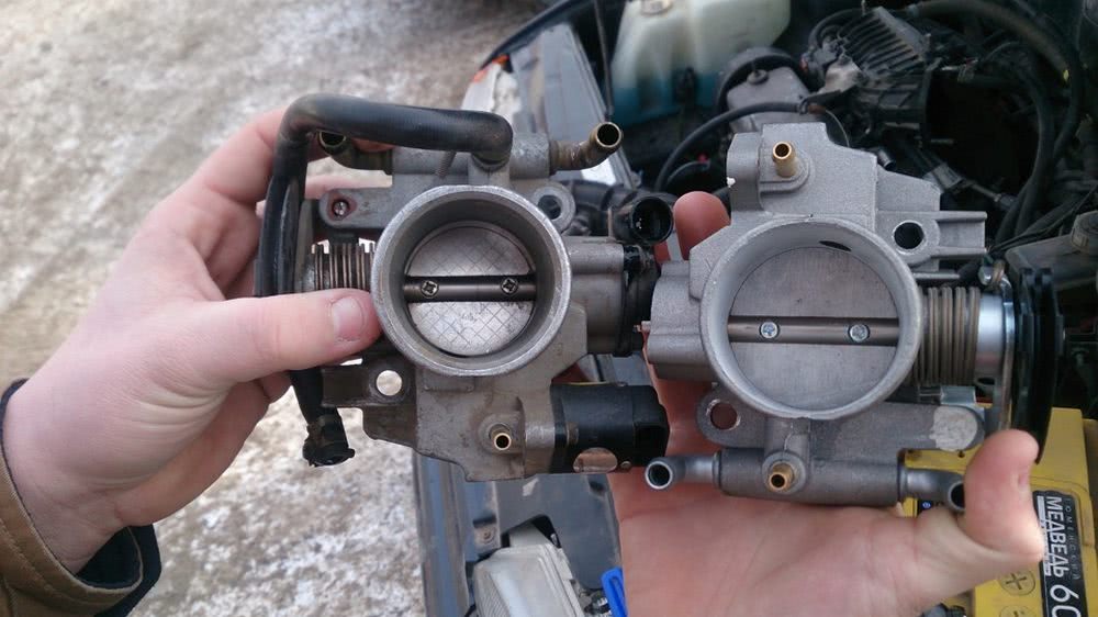 В первых ось заслонки приводится в движение посредством подведенного к ней металлического тросика, который соединен с акселератором.