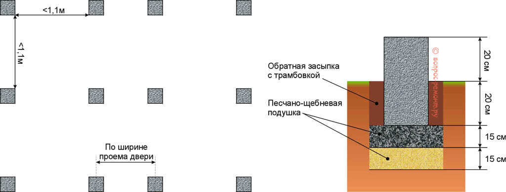 Для строительства дровяника возможно обустройство столбчатого незаглубленного фундамента: