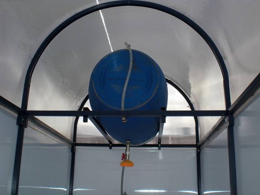 Правда, есть у пластиковых емкостей и один недостаток – они боятся низких температур, при которых трескаются. Поэтому пластиковые баки для душа на зиму или консервируют, закрывая теплотехническими материалами, или убирают в отапливаемые помещения.