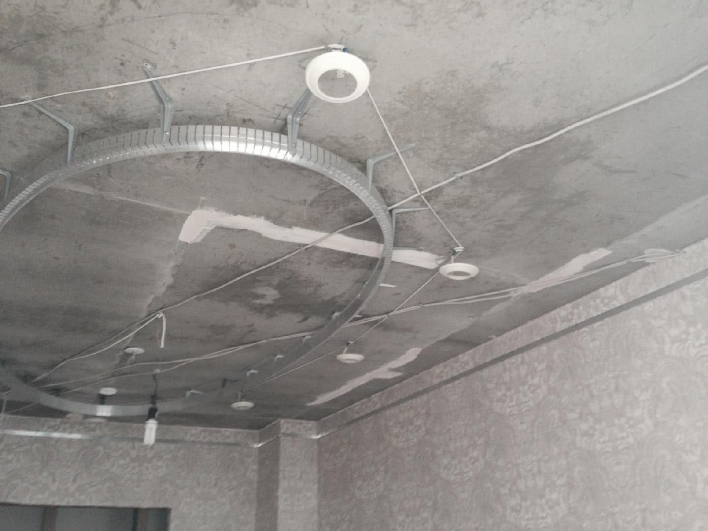 - часто в новых домах потолок это просто голая, бетонная плита, в этом случае, его придется штукатурить, шпаклевать и прятать за подвесной гипсокартонной конструкцией.