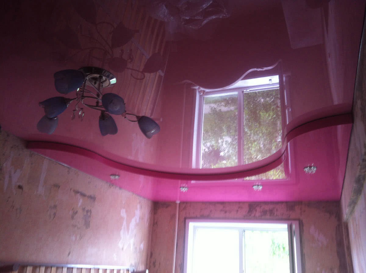 Конденсат на натяжном потолке не собирается, но чтобы не было заметно следов от брызг, лучше выбрать сатиновую или матовую пленку вместо глянцевой.