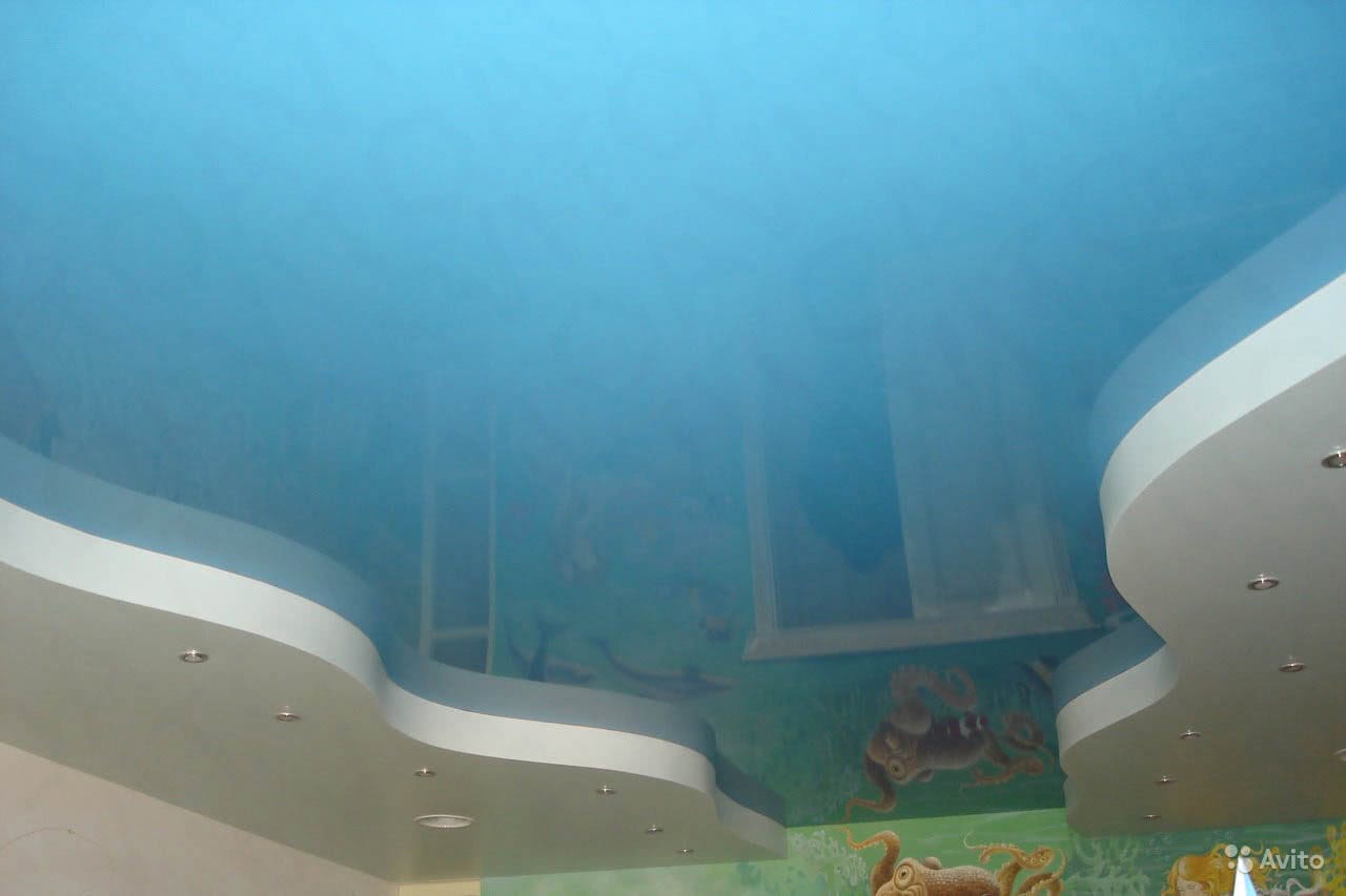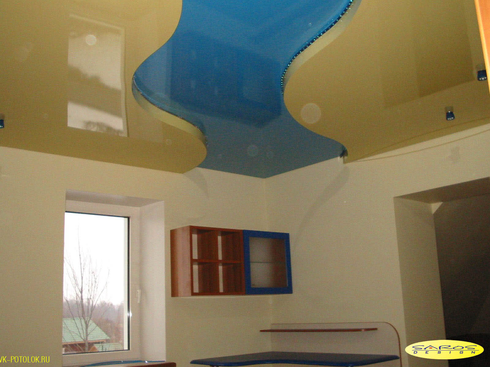 - Цветные. С их помощью вы сможете создать оригинальный дизайн с различными эффектами. Можно использовать любые оттенки и комбинации. Многим нравятся двуцветные полотна. Широко распространен черно-белый потолок, который необычно смотрится в помещении. Яркие цвета обязательно найдут свое место в комнате вашего ребенка.