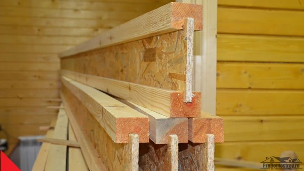 Существует не менее популярный вид двутавра, выполненный из дерева. Его применяют для формирования каркаса построек, устройства перекрытий между этажами или стропильной системы, а также возведения балконов и мансард. Профиль состоит из двух брусьев хвойных пород и плит ОСБ между ними. Конструкция не деформируется при большой нагрузке, имеет гладкую поверхность и не требует специальной техники для монтажа.