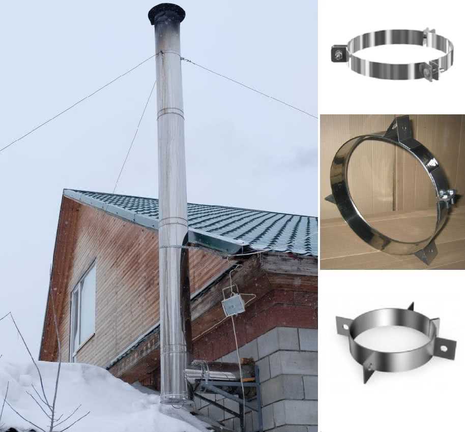 Крепление растяжек к дымоходу из сэндвич туб